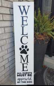 Porch signs are just plain fun. A way to welcome people to your home, a way to help celebrate a season or a holiday, or just a way to express yourself. They can be a simple design or as complicated as you want them to be. The ones I make range in width from 7.25″ (18 cm) to 11.25″ (28.5 cm) wide and 3′ (91 cm) to 4′ (122 cm) in height. If you would like a different height or width, please, feel free to contact me and we will discuss your needs.